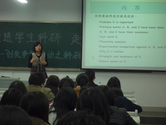 随着08、09级同学科研论文写作的必要性日益突出,也为了能够更好地推进学生科研工作,带领更多同学走近学术领域,北6、北21党员服务站在“创先争优”精神的引导下于11月17日晚上7点在田家炳407教室为同学们送去了一场高质量的科研论文指导会。北6党员服务站指导老师郝颖和产业经济学2008级研究生刘斌、王殿颖先后站上讲台为同学们授业解道。