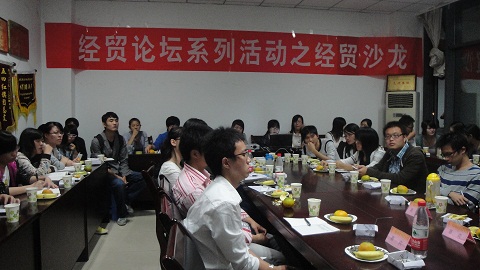 2010年10月20日晚7:00,由经济贸易学院团委学生会主办、经济贸易学院团委学生会学习科技部与素质拓展部承办的第一届437ccm必赢国际经贸学院“知识的魅力”系列活动暨“经贸论坛”系列活动之经贸沙龙在田家炳402教室顺利召开。本次活动荣邀党总支副书记李华平老师、国贸系主任张宝均教授、团委书记魏新欣老师以及各年级代表出席本次活动。