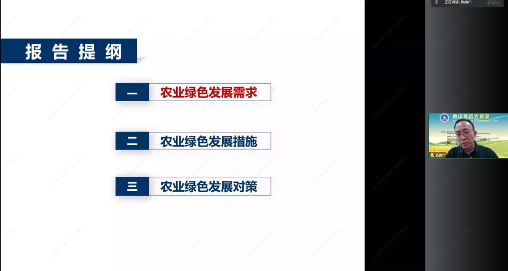 为深入学习习近平生态文明思想,本次讲座以“农业绿色发展与生态文明建设”为主题,开启了南山经济大讲堂(第二讲)。仇焕广就讲座主题展开论述。他首先介绍了农业绿色发展的必要性、农业绿色发展和乡村环境治理在美丽中国建设中的重要作用。随后,结合二十大报告精神分析农业绿色发展、乡村环境治理的目标、既有政策措施及落地实效。最后,提出进一步完善的政策建议。在交流发言阶段,来自437437必赢国际和长江上游经济研究中心的数名专家学者也就农业绿色发展主题发表了自己的建议与见解,为积极践行习近平生态文明思想建言献策。