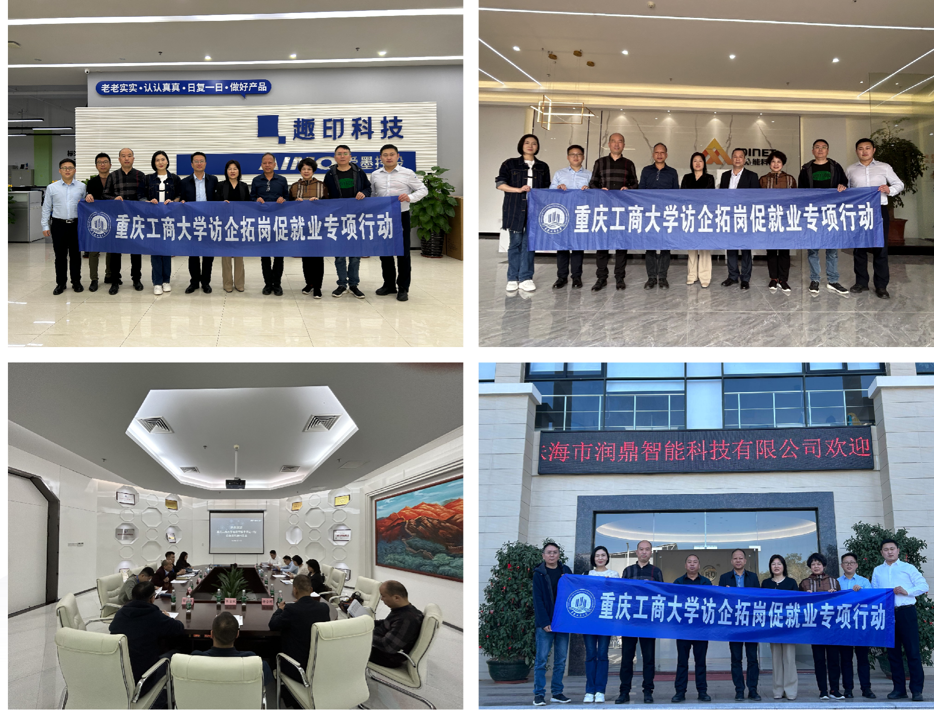 调研团队首先抵达珠海,实地走访了珠海市润鼎智能科技有限公司、纳思达股份有限公司、趣印科技有限公司、众能物联科技有限公司等多家在数字经济领域具有影响力的企业。其中,趣印科技和众能物联是我校优秀校友开办的企业,他们在各自领域取得了非常好的成绩。在与企业负责人的交流中,李书记一行详细了解了企业的发展历程、技术创新及市场应用情况,并就数字经济的前沿技术、产业趋势及人才培养等议题进行了深入探讨。企业方面对学院领导一行的到来表示热烈欢迎,并分享了企业在数字经济领域的实践经验和发展规划。同时,调研团队还与珠海市人社部门进行了交流,了解了珠海市人才引进、用工需求、服务企业等方面的经验做法和相关政策。