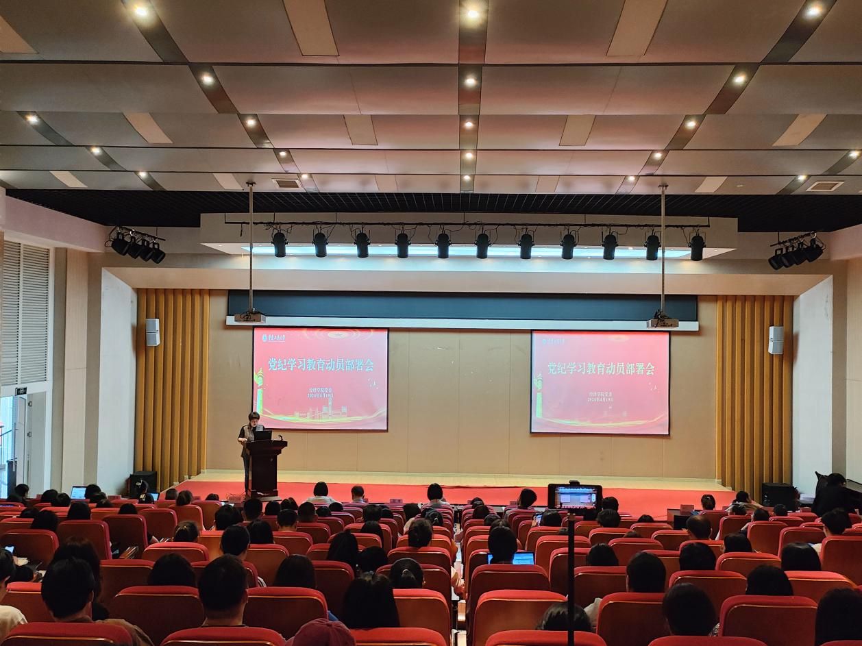 4月19日下午,437437必赢国际在田家炳209报告厅召开党纪学习教育动员部署会。会议由正处级组织员雷菁主持,437437必赢国际领导班子、党委委员、师生党员共300余人参加会议。