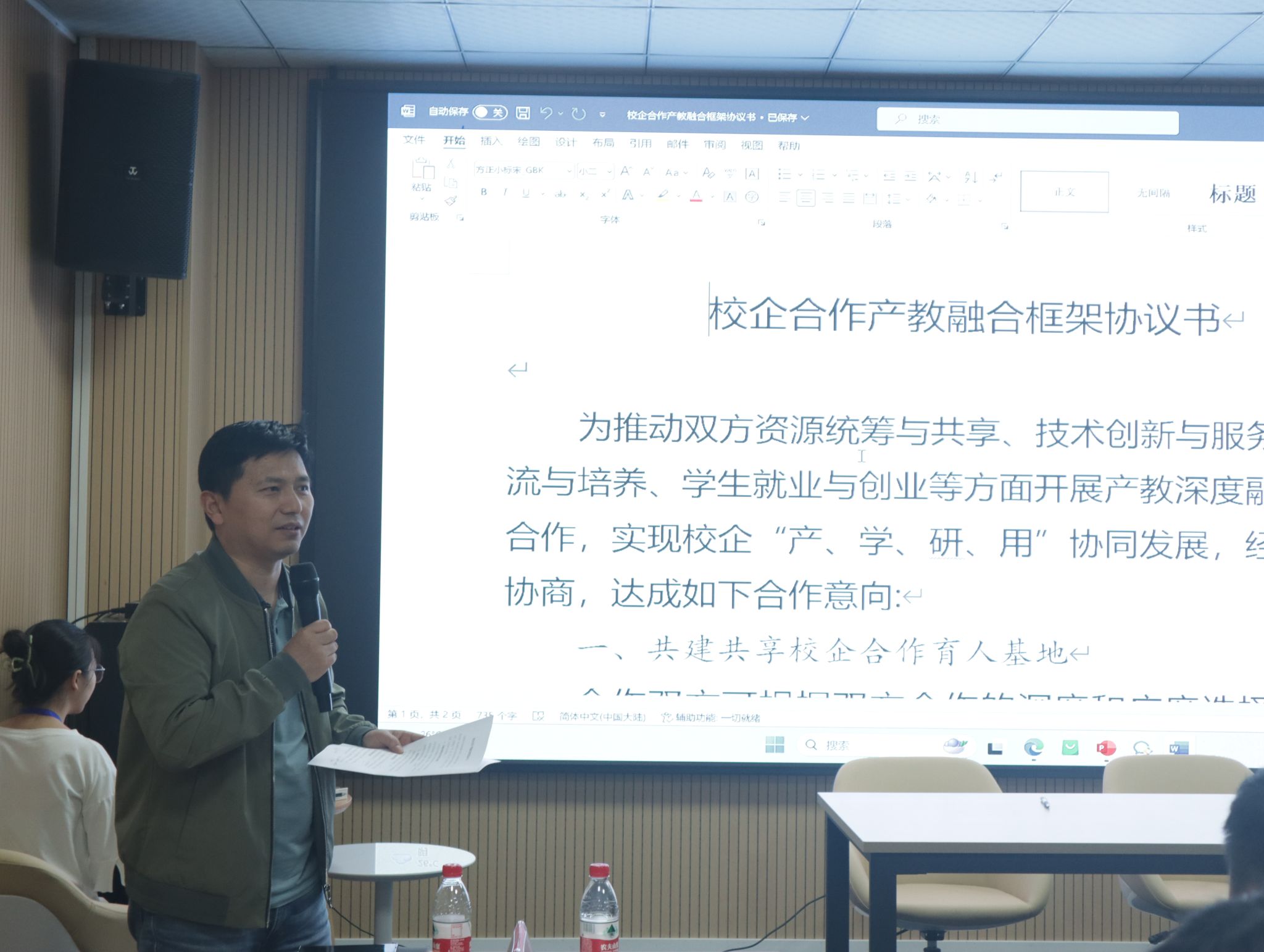 尹元福副院长解读了产教融合框架协议,明确双方的合作意向,来自企业的代表也纷纷各抒己见,表达了对深度融入区域经济社会发展大局、提高产教融合、校企合作精准度的强烈认同,提出要积极主动解决好产教融合实践中存在的校企合作缺乏有效载体、融合路径不够顺畅等问题,全方位增强校企合作产教深度融合,促进校企产多方共赢。与会人员围绕“如何深化校企合作,实现产教融合”的主题展开了热烈的讨论。大家一致认为,深化校企合作需要双方共同努力,建立起长效机制,加强信息共享和资源互补。同时,还需要注重实践教学和创新创业教育的融合,让学生能够在实践中学习、在创新中成长。