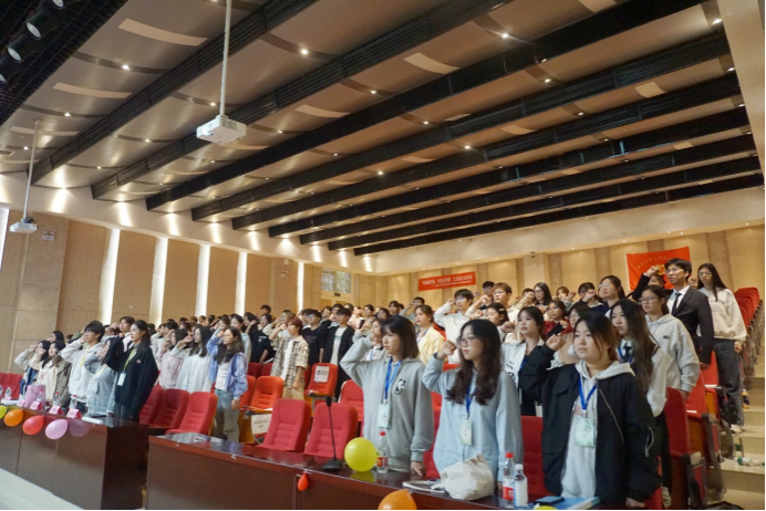 活动伊始,青队负责人22级经济学实验班的赵美棋介绍了各部门的职责,回顾了青队过去取得成绩,并对本学年工作计划进行了讲述。她讲到青队本着“以青春的名义将爱心传递,用行动的陪伴将温暖延续”的宗旨,在校内外开展丰富多彩的志愿服务活动,倡导社会正能量,传递爱与温暖。紧接着,志愿者代表带领全体志愿者庄严宣誓,明确了志愿者的责任与使命,各部门负责人向志愿者颁发队徽,增强他们的团队认同感。最后,在同学们精心准备的节目表演和丰富有趣的游戏中,团队成员的加深认识了解,提升团队凝聚力。