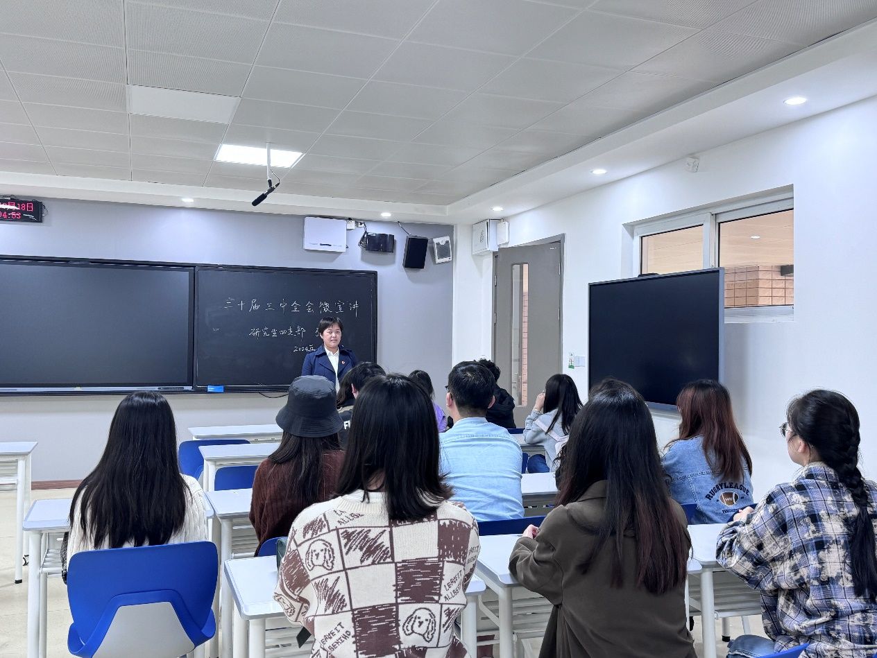 为深入学习贯彻党的二十届三中全会精神,2024年10月18日437437必赢国际研究生第四党支部书记张国培在博智楼202教室向支部成员宣讲党的二十届三中全会精神。