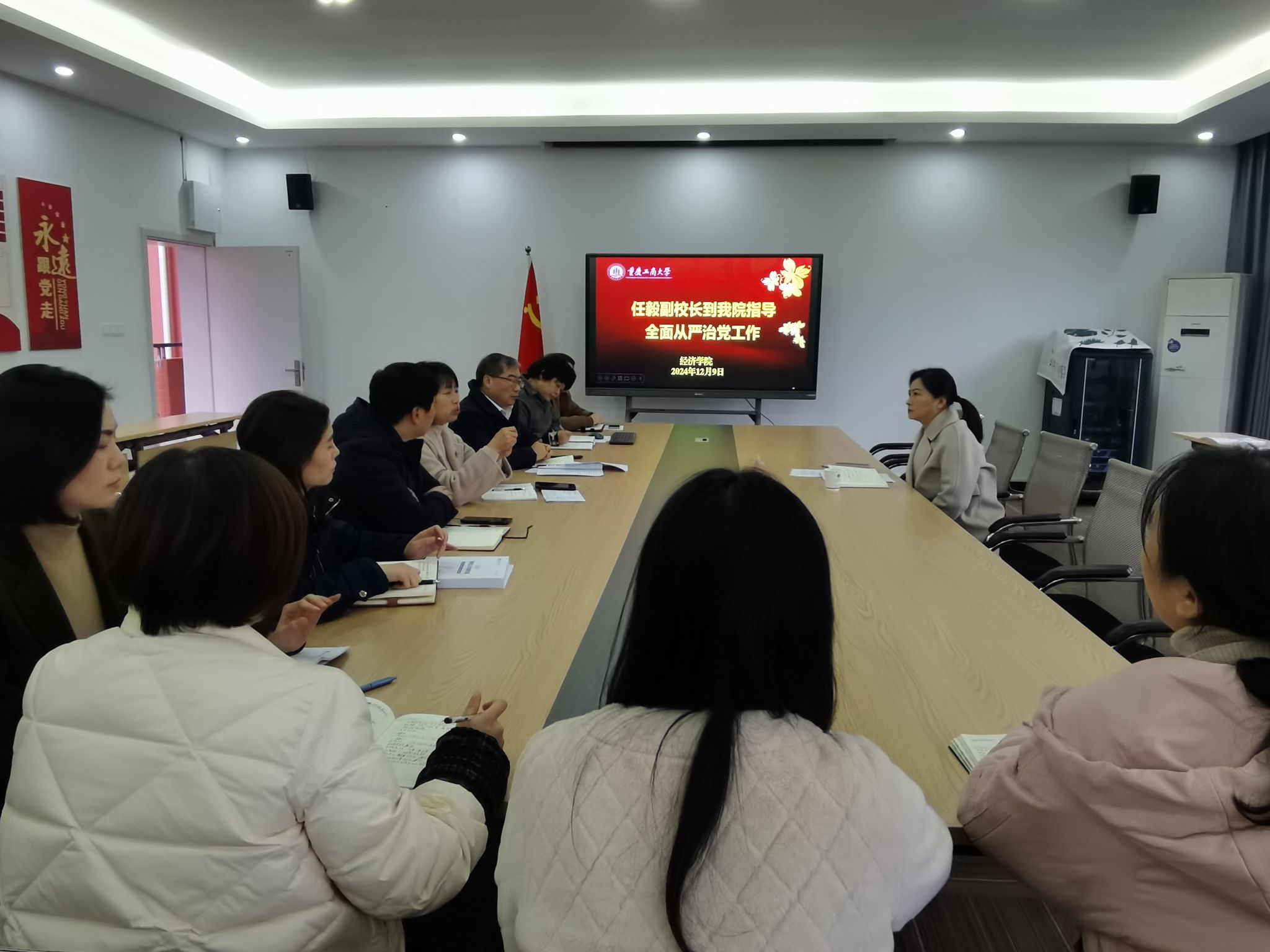 2024年12月9日,校党委常委、副校长任毅来到437437必赢国际调研指导全面从严治党工作。学院书记唐春秋、院长宋瑛、副书记、纪委书记白海龙、副院长尹元福、副院长李颖慧、正处级专职组织员雷菁、成渝地区双城经济圈建设研究院副院长黄潇及办公室相关人员参加。