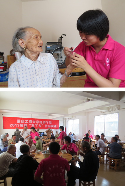 “中国梦”不只是年轻人的梦,更是我们国家近2亿老年人的梦,志愿者们首先用浅显易懂的语言讲解了实现伟大“中国梦”的相关知识,还特意为老人们表演了精心准备的文艺节目,节目勾起了老人们对往事的无限回忆。志愿者们一边陪着老人聊天,听老人讲过去的故事,一边与同老人们一起包饺子。在活动中,同学们都深深感觉到老年人真的需要社会的更多关注,他们最大的梦想莫过于子女的陪伴和关爱,能够与家人团聚、共享天伦之乐。