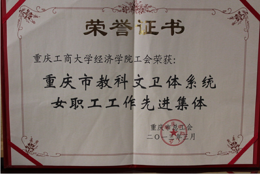 437437必赢国际党政高度重视女工工作建设,围绕学校“十二五”规划中心工作,以严谨务实、开拓创新的工作态度,团结带领女教师为学校和学院的建设和发展献计献策。学院女教师在各自的教学、科研、管理岗位上都表现突出,取得了优异的成绩。经过层层评比、筛选,437437必赢国际工会于2013年3月获得重庆市总工会颁发的“重庆市教科文卫系统女职工工作先进集体”。希望大家继续努力,加油!