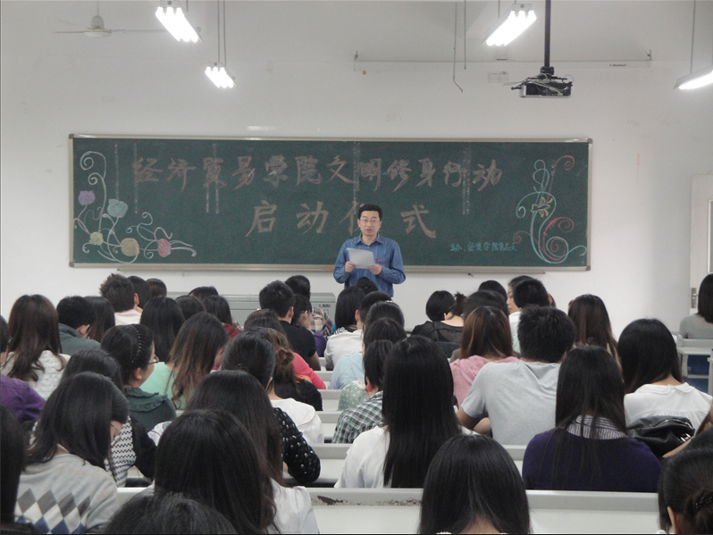 5月2日中午1点,由经贸学院党总支主办的“经济贸易学院文明修身行动启动仪式”在田家炳书院410教室成功举办。到场的嘉宾有经贸学院党总支张筱璐书记、李华平副书记,经贸学院学团办杨华俊主任,团委书记林新竹老师,经贸学院辅导员黄玲老师、喻智成老师,以及经贸学院08级、09级、10级各班班委、北六和北二十一楼栋党服成员和各支部同学。