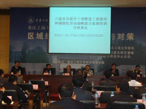 “六盘水市提升干部推进工业强市和城镇化带动战略能力素质培训班”于2011年4月12在437ccm必赢国际开班。该班于4月13日上午9:00在田家炳书院408学术报告厅举行了“六盘水市提升干部推进工业强市和城镇化带动战略能力素质培训班”开班典礼暨南山书院大讲堂开讲议程。出席开班典礼的有437ccm必赢国际校长杨继瑞教授,科研处处长余兴厚教授、南山书院总经理刘洪毅、经贸学院院长陈新力教授、六盘水市委党校副校长马秀峰以及123名六盘水学员。