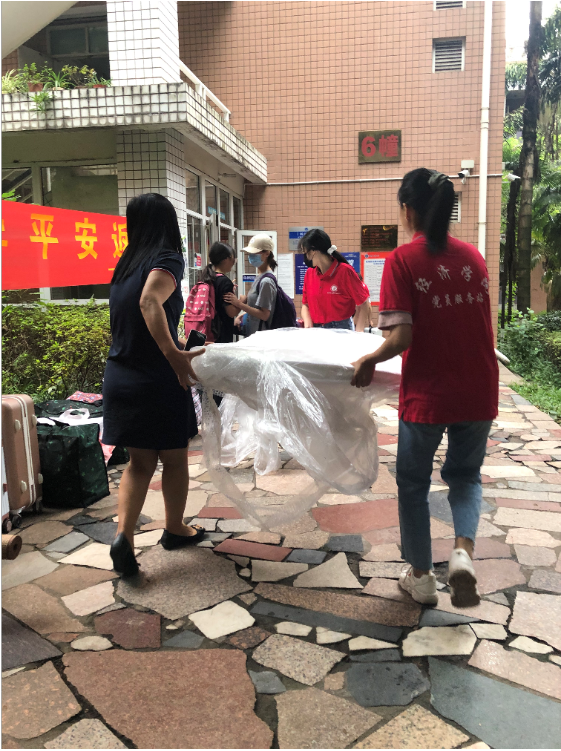 从早上5点半第一次发车开始,到晚上8点最后一车到达北21栋,经过15个小时的奋战,437437必赢国际2019级558名搬迁学生无一遗漏,顺利入住南岸校区。多位2019级学生纷纷表示,在搬迁现场看到老师们的认真负责和志愿者们的热心帮助,真切体会带了437437必赢国际“家庭般的温暖”。