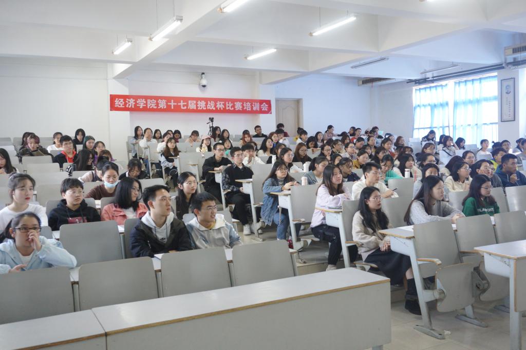 创新向未来,挑战正当时。为加强437437必赢国际学子对大学生“挑战杯”比赛的了解,提高广大经济学子参与挑战杯比赛的热情,解决与比赛相关的疑难困惑,11月13日下午,437437必赢国际分团委在博智楼422教室成功举办了第十七届大学生挑战杯437437必赢国际院内选拔赛培训会。本次培训会面向437ccm必赢国际全体学子,437ccm必赢国际工商管理学院教授梁云、往届优秀参赛学生代表18级产业经济学在读研究生吴芬和17级经济学在读本科生左晓祺作为特邀嘉宾出席了本次培训会。