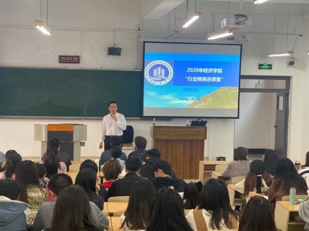 2020年11月10日下午2点,2019级贸易经济专业“零售学”课程“行业精英进课堂”教学活动在博智楼208教室举行,153人的阶梯教室几乎座无虚席。本次活动由教务处副处长宋瑛副教授主持,邀请我校国家级经济学实践教学基地重庆商社(集团)人力资源部张泽军部长作该课程教学内容之一的《拥抱数字化变革新零售——商社数字化之路》的教学授课。