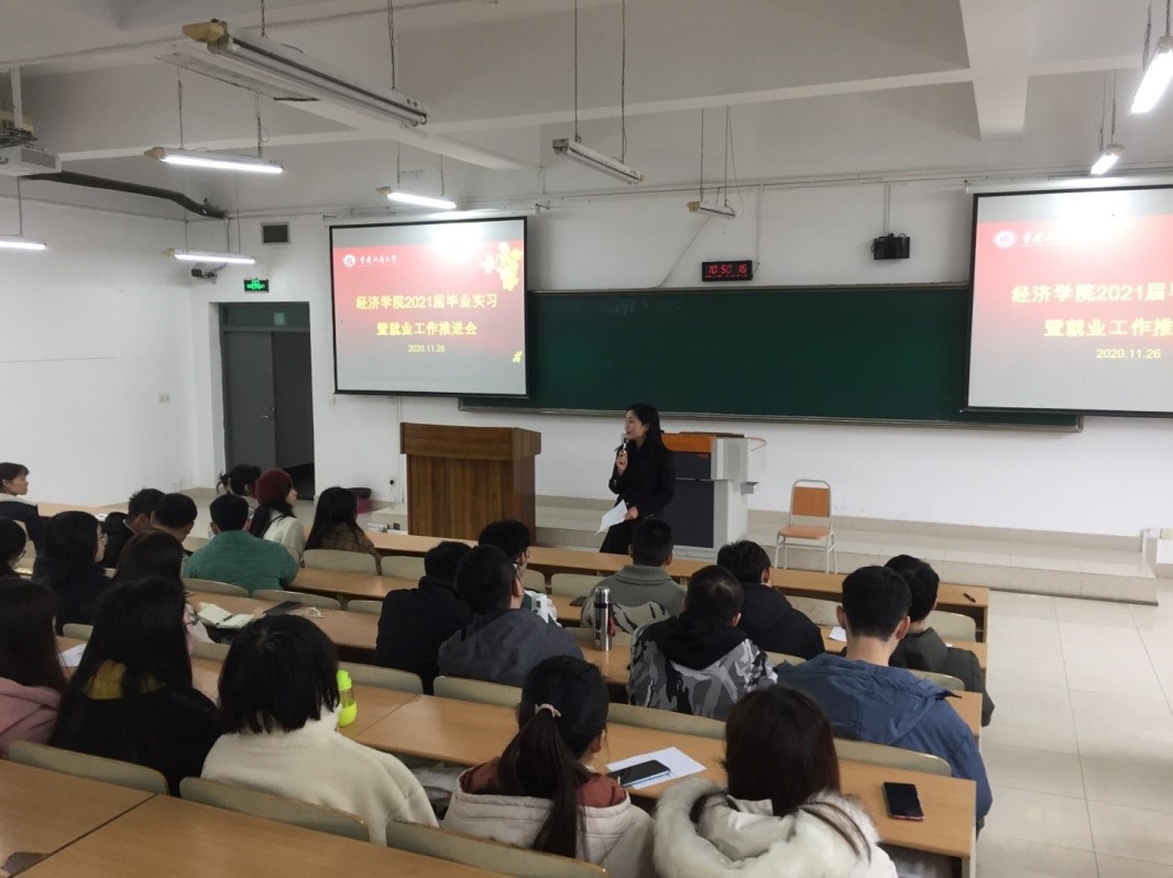 为了全面落实学校关于毕业实习要求,积极推进毕业生就业工作,近日,437437必赢国际各系部先后组织召开了2021届学生毕业实习动员暨就业工作推进会。437437必赢国际分党委副书记兼副院长王燕、副院长朱沙、经济学系主任李然、贸易经济系主任杨海丽、国际经济与贸易系主任蒋兴红,2021届学生辅导员邓雪霜、张涛、文理分别出席了相应的动员推进会。