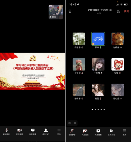 2022年2月18日下午,437437必赢国际研究生第三党支部在企业微信线上会议室开展了2月组织生活会,深入学习习近平总书记在《求是》上的文章——《不断做强做优做大我国数字经济》。本次会议由支部书记薛晶月主持,研究生第三党支部全体党员参加。