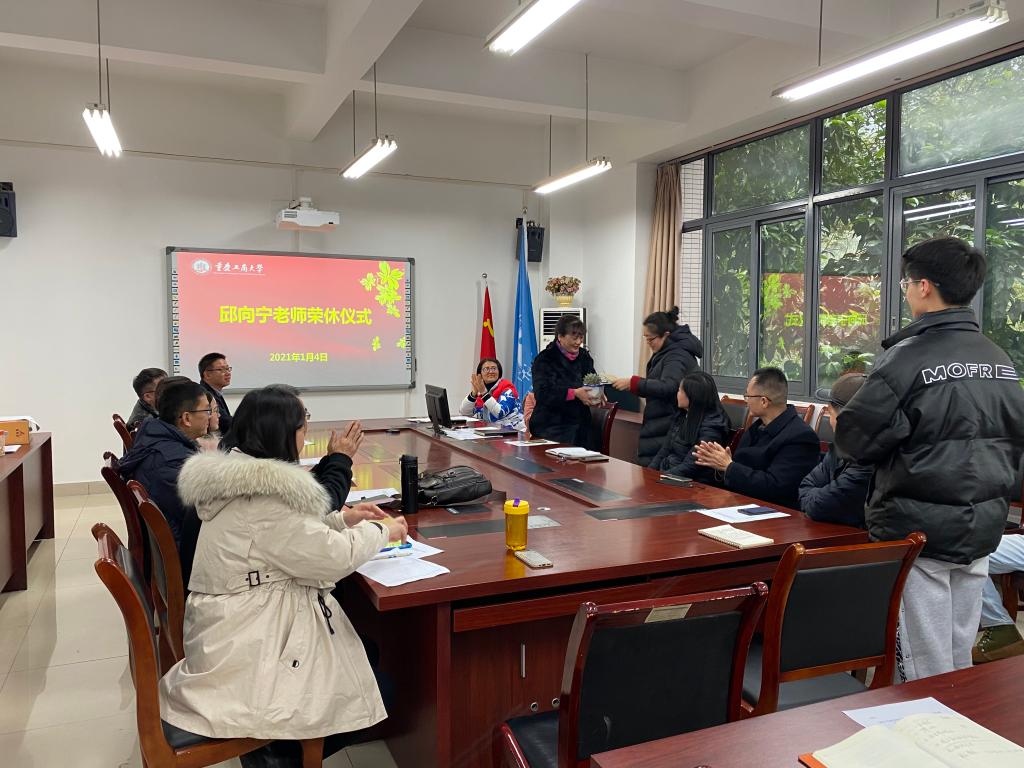 最后,李自维对邱老师及统战人士为学院做出的贡献表示感谢。她希望,学院统战人士继续紧密团结在中国共产党周围,为学校学院发展建言献策,希望荣休老师继续关心、关注和支持学院事业发展。她号召,青年教师要将前辈一丝不苟、兢兢业业的务实精神发扬光大,接过接力棒,奋力跑出学院更好成绩!