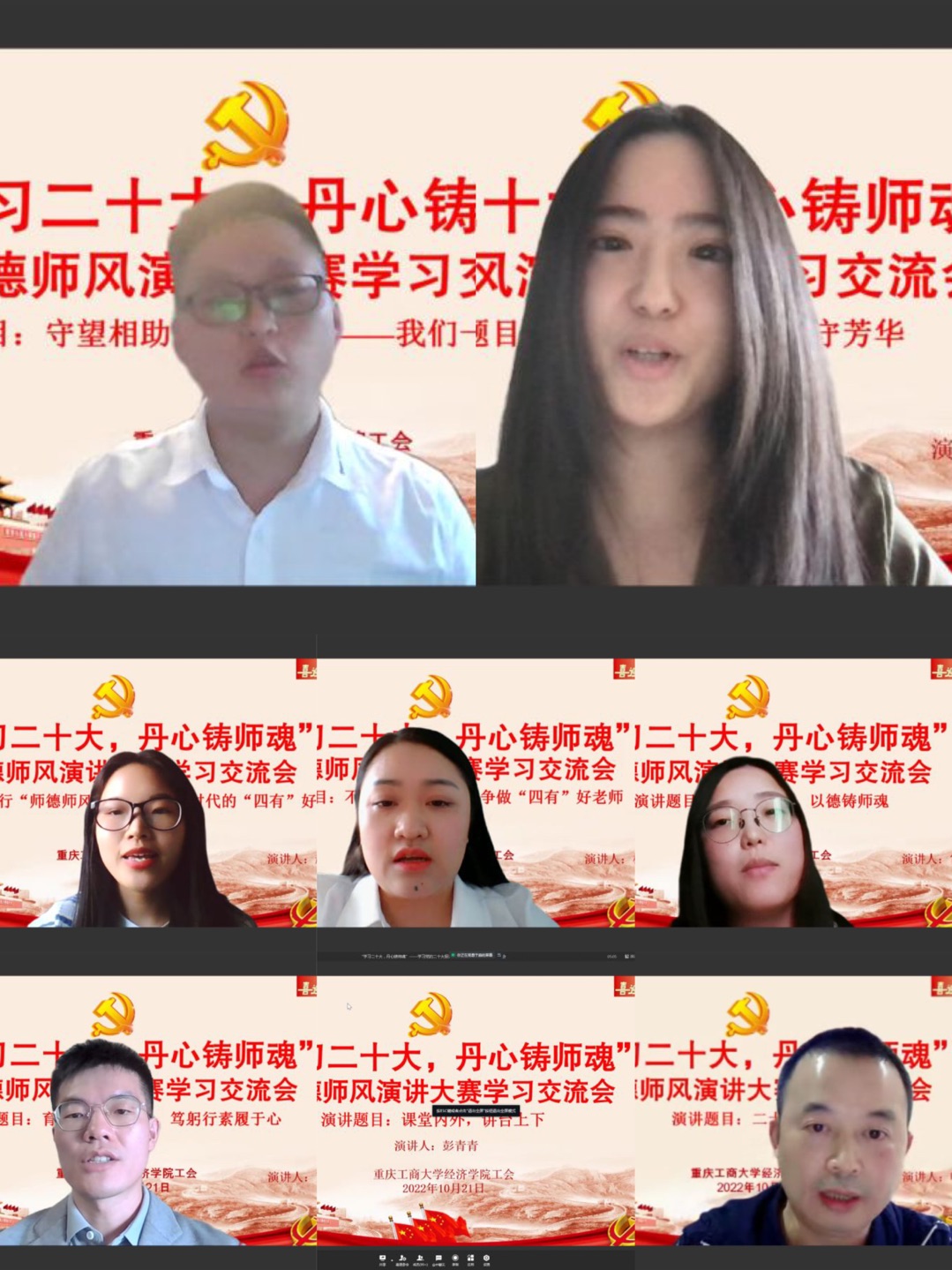 10月21日,在党的“二十大”召开之际,437437必赢国际党委和工会举行了学习二十大报告暨师德师风演讲比赛,因疫情防控需要,本次学习和比赛活动采取了线上的方式,全院100余名教职工参加了在线活动。