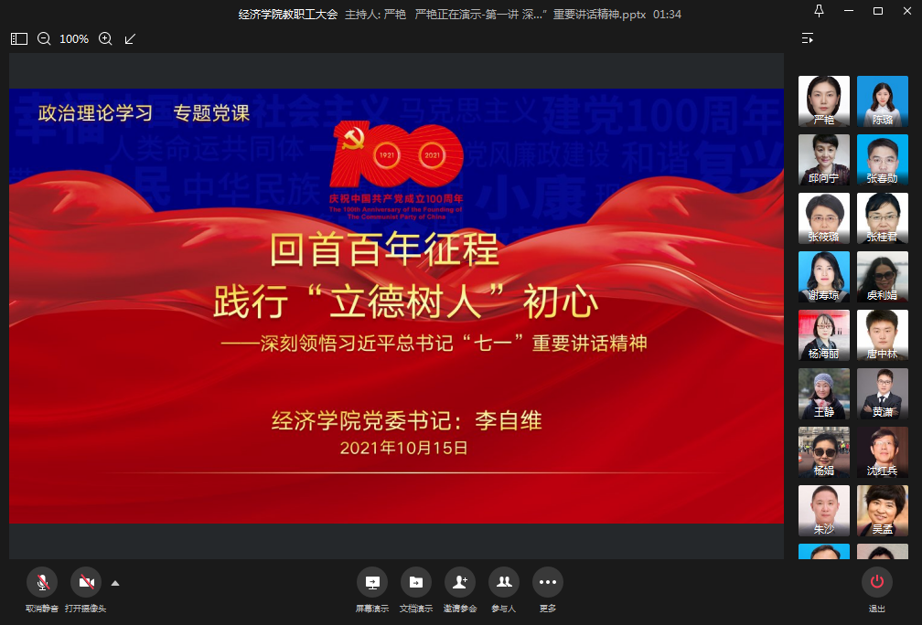 本次会议主要由李自维书记以《回首百年征程 践行“立德树人”初心》为主题,向全院教职工宣讲了习近平总书记“七一”重要讲话精神,希望全体教职工深刻领悟习近平总书记“七一”重要讲话精神。