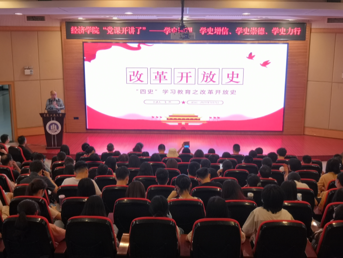 本次“党课开讲啦”由6个支部党员主讲,教工一支部书记李然、教工二支部党员老师杨军结合亲身经历,用丰富的专业知识讲述了中国改革开放史和商贸流通改革史;学生一支部许耀文和学生二支部书记喻智成则用大量、详实的历史图片和影像,生动地讲述了革命浪潮之五卅运动和坚苦卓绝之湘江战役;研究生一支部学生党员胡芮川和研究生二支部学生党员秦雪华声情并茂地讲述了优秀共产党员焦裕禄、黄大年的先进事迹。每个党员的讲述有历史材料,有成果分析,更有个人感悟,让每一个参会人员身心投入其讲述中,受到教育,得到启迪。