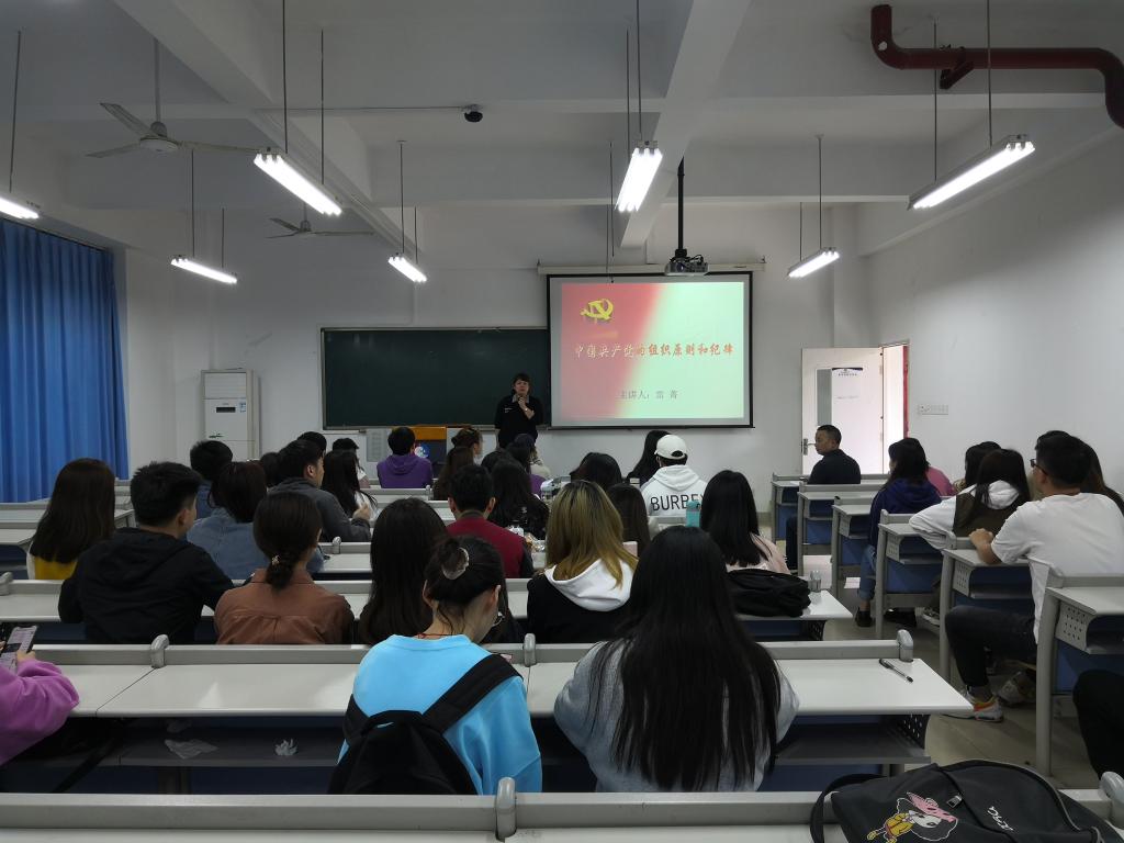 2021年4月21日中午12:30在田家炳书院410教室,437437必赢国际专职组织员雷菁讲了题为《中国共产党的组织原则和纪律》党史学习专题党课,学生本科一支部、学生本科二支部、学生研究生二支部三个支部共90名党员听了党课。
