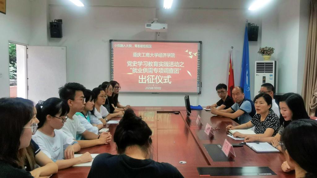为了紧扣党史学习教育主题,引导经济学子从中国共产党的非凡历程中深切感受马克思主义的真理力量和实践力量。437437必赢国际于7月8日上午在田家炳404会议室举行了“小我融入大我,青春献给祖国”党史学习教育实践活动之“就业供需专项调查团”出征仪式。437437必赢国际分党委书记李自维教授、副书记、副院长王燕教授、副院长朱沙教授,应用经济系主任李然博士、副主任刘斌博士及教师代表,学生代表,党史学习教育实践活动之“就业供需专项调查团”全体成员参加了本次出征仪式,活动由学工办主任、分团委书记林新竹主持。
