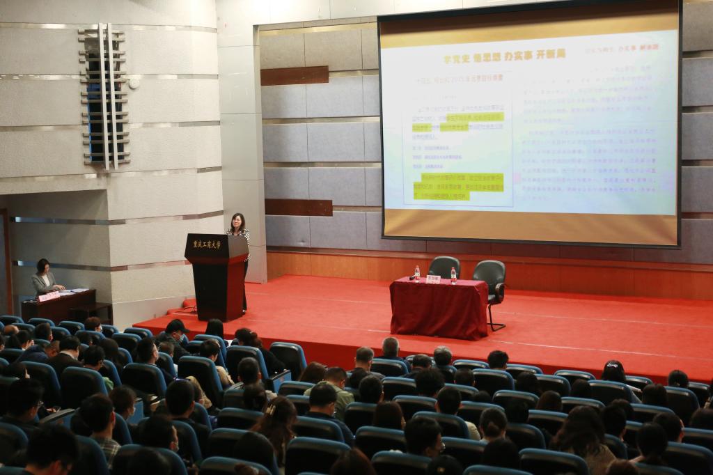 本次党史专题学习邀请到了中共重庆市委党史研究室南方局研究室副主任黎余同志,作《不忘来时路,初心永不移——从重庆党团创建史感悟共产党人的初心和使命》专题党课讲授。黎余主任分别从“星火燎原——马克思主义在重庆的传播”、“党员建团——四川三人与重庆团组织的建立”、“以团代党——中国共产党重庆地方执行委员会的成立”、“泸顺起义——中国共产党武装起义的先声”、“不忘初心——重庆党团创建史的体会”等五个方面,以充分的史料详细梳理了重庆党团创建史,并结合重庆党团创建史中的英雄模范人物,鼓励在座党员牢记共产党人的初心和使命,为中国特色社会主义事业贡献力量。他还从重庆地方马克思主义传播的先驱者选择共产主义的意义和先驱者对共产主义坚如磐石的理想信念两方面谈了对重庆党团创建史的体会。