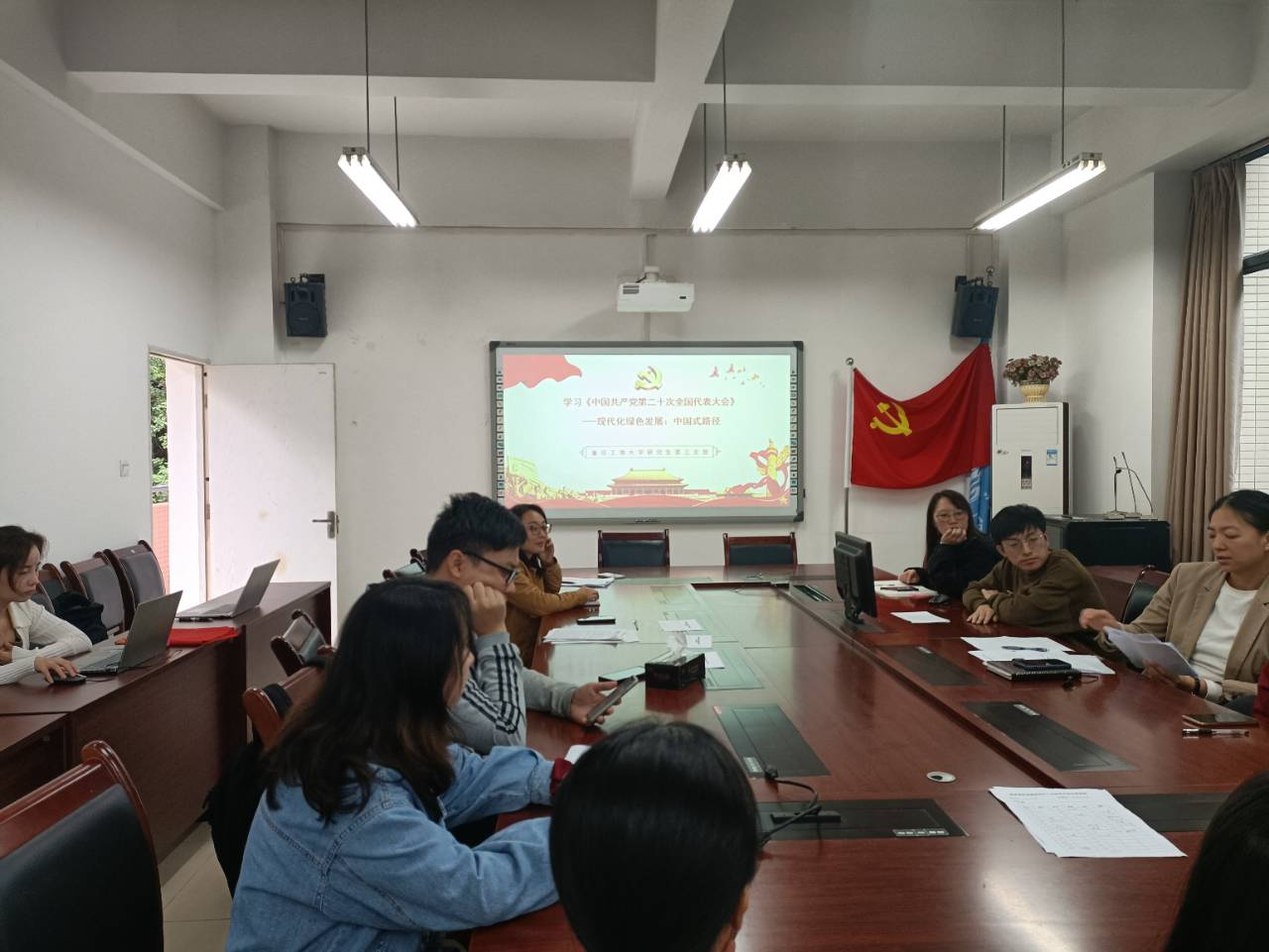 2022年10月28日下午,437437必赢国际研究生第三党支部在田家炳404开展了10月组织生活会,深入学习中国共产党第二十次全国代表大会会议关于“现代化绿色发展:中国式路径”的内容。本次会议由支部书记薛晶月主持,研究生第三党支部全体党员参加。