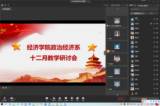 鼓舞了本系全体上下凝心聚力,砥砺前行的奋斗决心,并让各位教师对2023年度的各项工作有了更清晰的目标和规划。各位教师将牢记自己的职责,立足岗位,在立德树人的教育之路上,笃定信心,稳中求进,共同去创造政治经济系更加美好、更加灿烂辉煌的明天。
