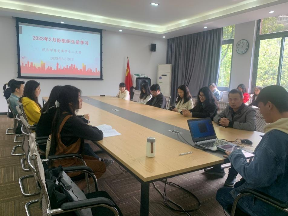 会议最后,支部书记喻智成老师传达了437437必赢国际党委2023年第一次党建工作会会议精神,他谈到,今年是学院党委创建党建工作特色年,学院党委将在本年度深入学习习近平经济思想,并将习近平经济思想传播进中小学、进社区、进乡镇,学生二支部要在这个过程中主动作为,做好学习者、宣讲者。同时,喻老师对本学期的党员发展和确定入党积极分子做了工作安排。