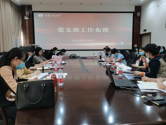 接着,由雷菁组织员进行党支部工作布置。雷菁组织员首先传达了学校组织部相关工作,要求各支部加强党员工作条例专项学习,扎实推进党建“双创”工作,提升基层党组织功能,注重支部特色打造,贯彻学校十四五规划,并积极整改党建方面存在的问题。随后,雷菁组织员对2021年学校党委党费收支情况做了通报,并对各支部2022年工作计划、双创工作、党员培训、党员发展、支部建设及“五进”工程等工作提出了具体要求和布置。