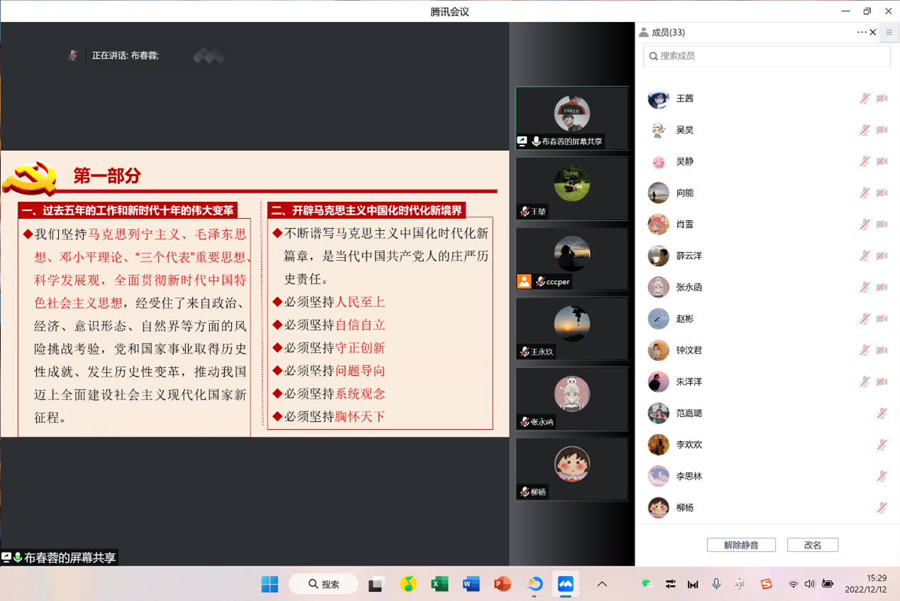 12月12日,437437必赢国际党委研究生第一党支部在线上召开十二月组织生活会,此次活动由支部屈彩萍同志主持,支部全体党员参加。