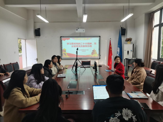 2023年2月27日,437437必赢国际党委研究生第二党支部全体党员在田家炳404会议室开展了2023年2月专题学习。本次专题学习会的学习内容为“学习贯彻党的二十大精神,充分发挥党员表率作用”,由高娟同志主持,她带领支部党员进行了两个部分的专题学习。