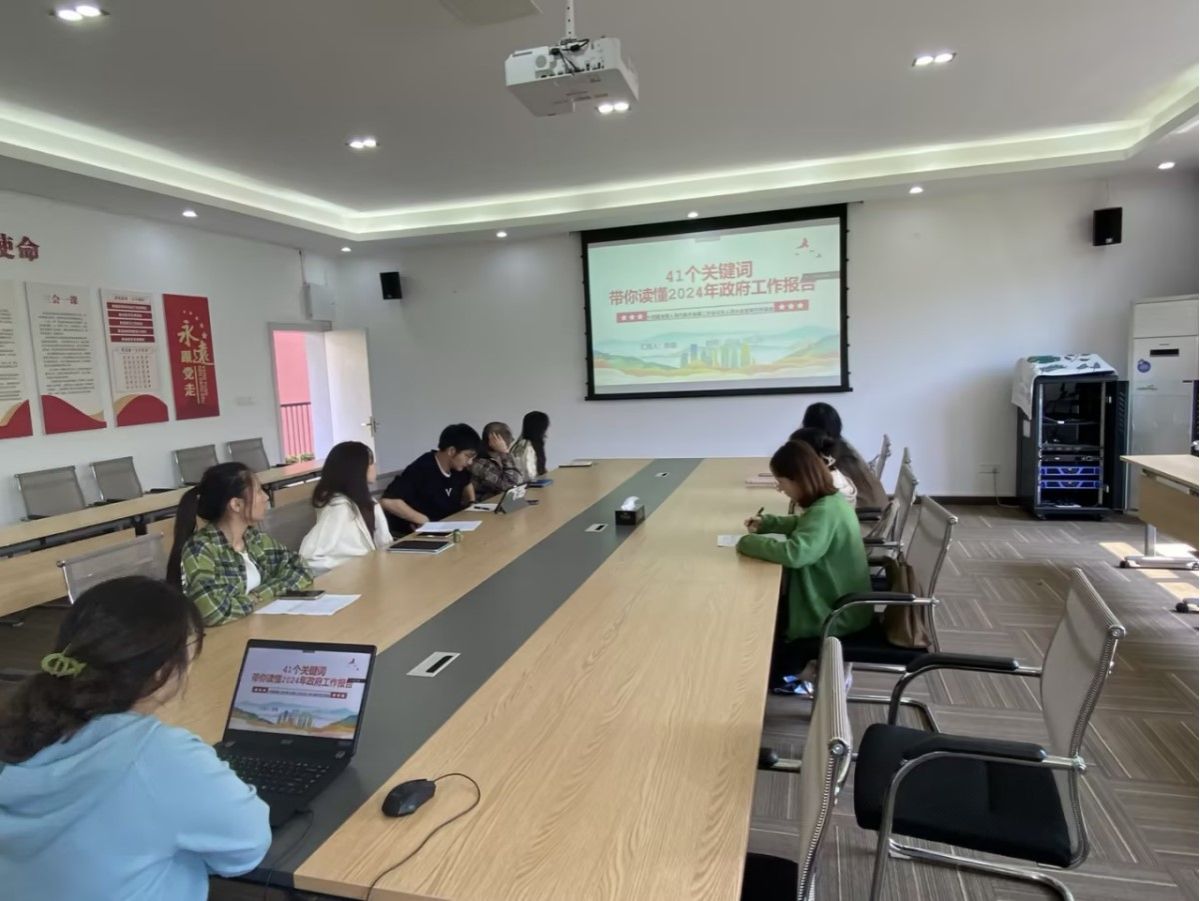 会议伊始,陈璐同志从2024年全国两会基本不情况、2024年政府工作报告以及习近平总书记在两会期间重要讲话精神等三个方面宣讲了会议精神。接着,陈璐同志从“新质生产力”、“银发经济”、“高等教育综合改革试点”等41个关键词重点讲解了政府工作报告中突出的新目标、新任务、新举措。随后,陈璐同志组织了全体党员围绕学习内容展开了专题讨论,她指出学生党员们要深刻认识全国两会精神实质内涵,掀起学习热潮,切实做到学有所思、学有所获、学用结合。