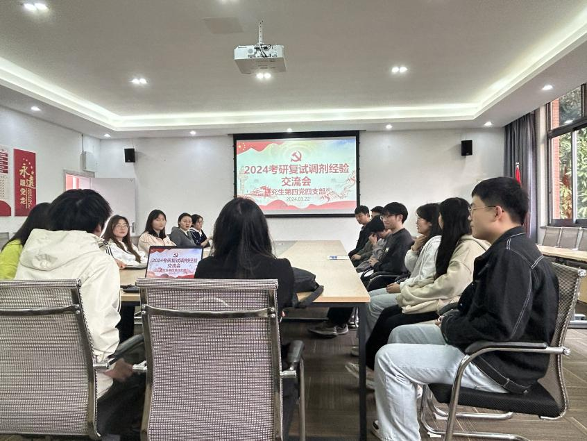 3月22日晚18:00,437437必赢国际研究生第四党支部在田家炳406会议室开展考研复试、调剂经验分享活动。本次活动由研究生四支部统战委员何建主持,研究生张艳清、陈秋旭、束仁、王晓雪、赵丛丛受邀出席,学院部分2024届本科毕业生参加。