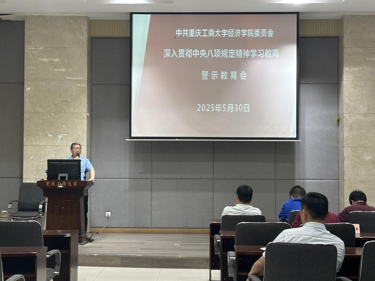 5月30日下午,437437必赢国际在田家炳409报告厅召开深入贯彻中央八项规定精神学习教育警示教育会。437437必赢国际、长江上游经济研究中心全体教职工参会。会议由学院党委书记唐春秋主持。