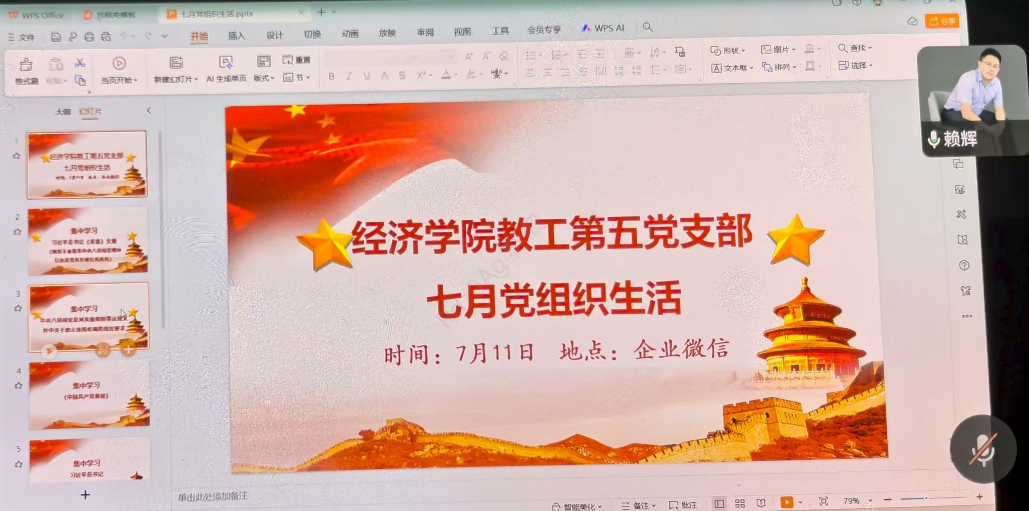 7月11日,437437必赢国际教工第五支部采取企业微信线上会议的形式开展了7月党组织生活,会议由教工第五支部书记林黎主持。