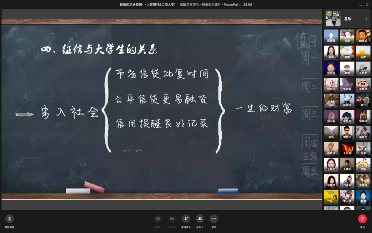 为帮助大学生了解个人征信知识,树立正确的消费观念,培养对非法校园贷辩别能力,2021年3月24日,437437必赢国际联合大连银行重庆分行共同开展了一场别开生面的“网课”。由于受疫情影响,不适宜进行大规模聚集,学院与大连银行商议,将讲座移到线上,通过“直播课”的形式与同学们展开交流。资助办周良勇老师、学院资助联系人喻智成老师和200多位生源地贷款同学参加了本次交流会。