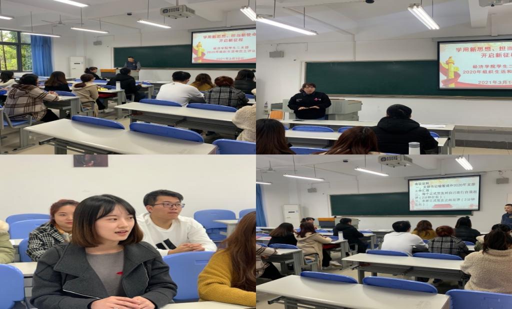 2021年3月10日,437437必赢国际学生二支部组织召开了2020年组织生活和民主评议会议,会议由支部书记喻智成主持,学院联系领导雷菁组织员出席会议,支部全体正式党员接受评议。