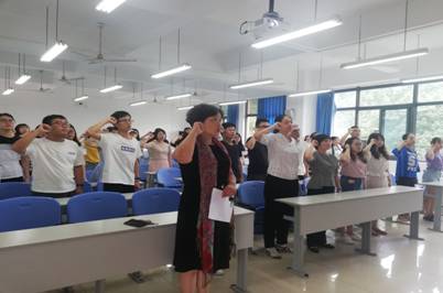 2019届毕业生党员离校之际,437437必赢国际研究生三个支部于6月24日在田家炳406教室,组织了毕业生党员重温入党誓词,教育引导毕业生党员强化党员身份意识,自觉参加党组织活动和工作,服从组织安排,按时足额交纳党费等。