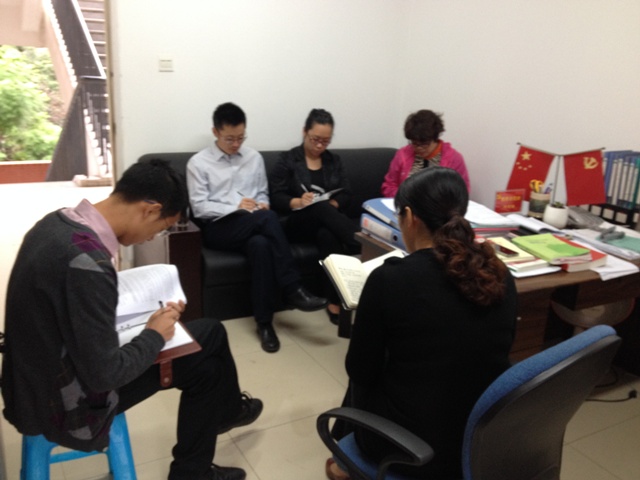 2013年9月26日下午,437437必赢国际党总支委员和各支部书记在田家炳书院414办公室,召开了党的群众路线教育实践活动工作学习会。