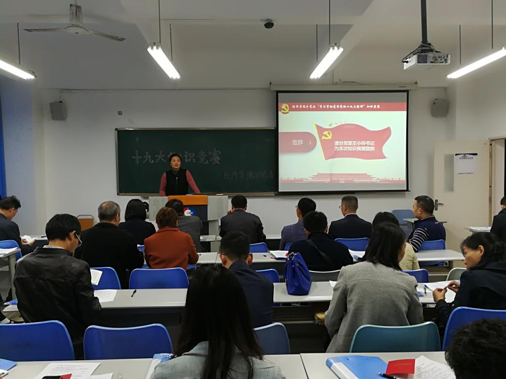 首先,437437必赢国际分党委王小玲书记致辞,要求全体教师党员认真学习贯彻落实十九大精神,尤其是在学校接受评估期间,做好本职工作、起好模范作用。紧接着,在笔试普测阶段:赛前,学院分党委要求学院全体教师党员采取个人自学、党小组集体学习等方式,形成了人人学精神、熟悉理论的氛围;竞赛当天,有50名教师党员参加了现场闭卷理论测试(由单选题和多选题构成),其中49名笔试合格者获得了现场抢答权。最后,在现场抢答阶段:气氛十分热烈,党员同志们参与热情高涨,将竞赛活动推向了高潮,但大家感觉意犹未尽。