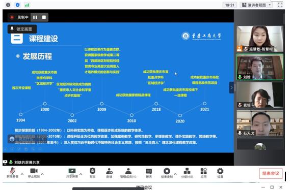 2022年3月21日,应用经济系通过腾讯会议开展同步课堂建设对外交流活动。本次活动是应新疆财经大学邀请,由智慧树在线教育平台组织,三方单位就437ccm必赢国际与新疆财经大学建设区域经济学课程同步课堂进行交流。新疆财经大学437437必赢国际副院长袁培、经济系主任石天戈,以及智慧树平台工作人员,与应用经济系教师进行沟通,437437必赢国际副院长尹元福出席此次活动。