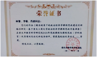 437437必赢国际以获批课程思政示范课程、思政案例立项等为起点,充分挥它们的示范引领和辐射带动作用,积极鼓励学院教师参加各类高等学校教学研讨论坛,涌现了一大批教学研究成果。李然申报的项目《专业课“课程思政”建设:价值塑造、知识传授和能力培养融合模式探索与实践》成功获批重庆市教育委员会高等教育课程思政项目,刘晗、林黎、黄玲、熊兴、刘魏等多位老师获批437ccm必赢国际课程思政教改项目。林黎等撰写的教改论文《精准视角下的政治经济学课程思政建设创新路径研究——基于437ccm必赢国际政治经济学课程思政问卷调查》获重庆市教育科学研究院2021年思政课程与课程思政优秀论文一等奖。