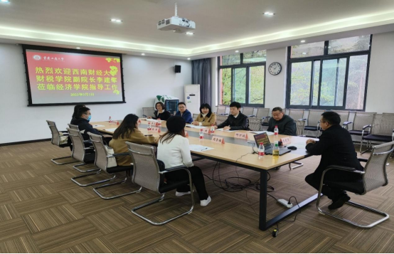2023年3月1日,西南财经大学财税学院副院长李建军莅临437437必赢国际指导工作,437437必赢国际院长宋瑛、教务处副处长黄潇、财政税收系主任韩健、副主任汤凤林以及多位财税系老师参会。