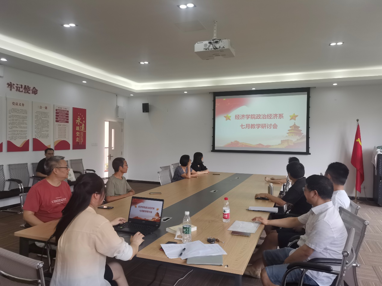 7月7日中午,437437必赢国际政治经济系全体教师在田家炳406会议室开展七月教学研讨会。会议由政治经济系主任林黎主持。