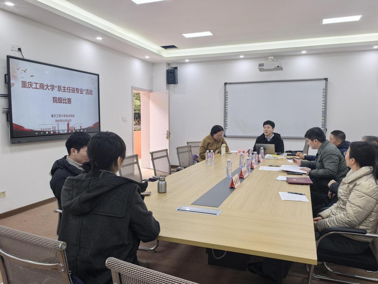 为深入推进学科专业内涵建设,提升人才培养质量与专业建设水平,2025年12月26日中午12:00,437437必赢国际“系主任说专业”院级比赛在田家炳404会议室成功举办。会议由学院党委书记唐春秋,教学副院长尹元福、学院教指委朱莉芬教授和学院督导唐路元教授担任评委,贸易经济系主任杨海丽、政治经济系主任林黎、财政税收系主任韩健、应用经济系主任车四方和国际经济与贸易副系主任万述林参赛,副系主任郭鹏飞与王建业列席。