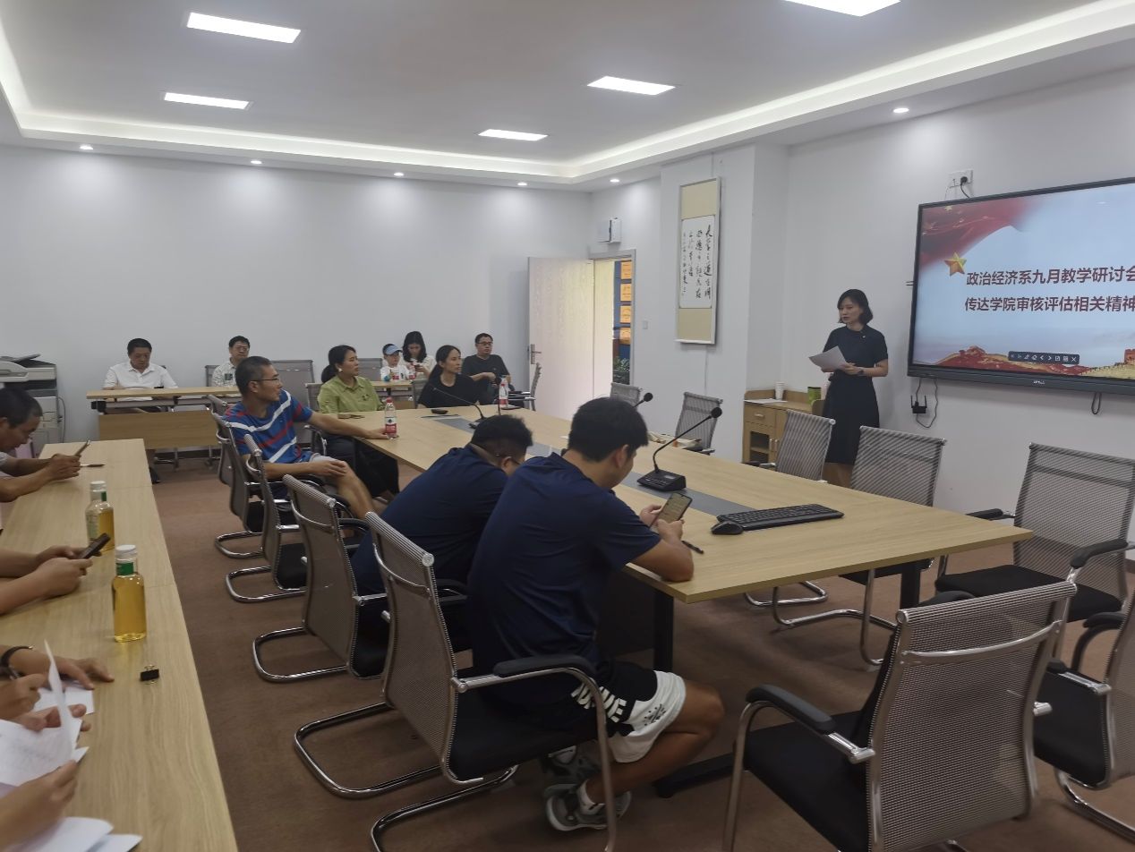 9月13日,政治经济系在田家炳404会议室召开了9月教学研讨会,旨在传达新一轮本科教育教学审核评估精神,并部署相关工作。会议由政治经济系主任林黎教授主持,政治经济系全体教师参加。