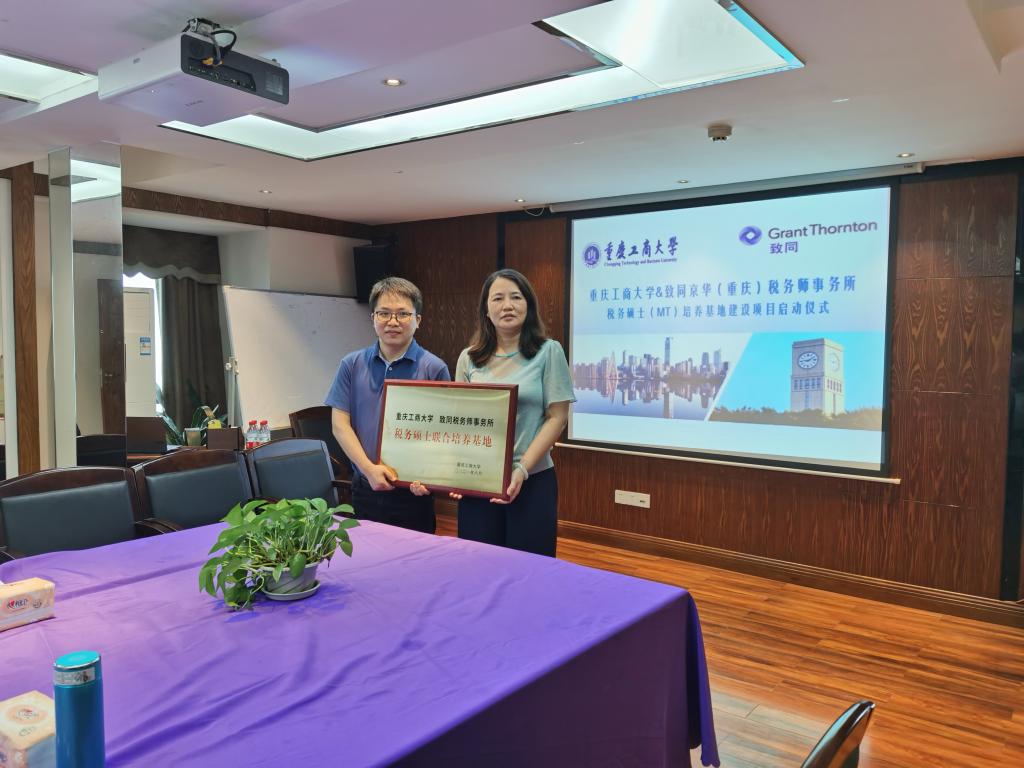 我院与致同京华(重庆)税务师事务所(下称致同所)经过前期接触和深入洽谈,最终合作成果落地。于6月21日下午在致同所会议厅成功举行税务硕士培养基地(市级)建设项目签约仪式,在友好真诚的氛围中签订了合作协议,颁发了“税务硕士培养基地”牌匾以及事业导师聘书。本次启动仪式由437437必赢国际黄潇副院长带队出席,列席成员包括尚可文教授、杨娟博士及税务研究生代表;致同所白云燕所长、业务部门负责人、待聘事业导师及相关业务骨干人员参加。