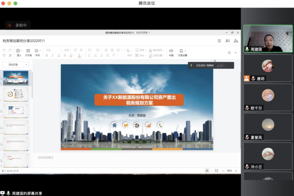 2022年5月13日晚,我校税务硕士教育中心通过腾讯会议成功举办了主题为“关于重庆XX新能源股份有限公司资产置出税务规划方案”的税收筹划专题课程移动课堂。此次移动课堂有幸邀请到中税网天运(重庆)税务师事务所经理周建国来做分享交流,周老师同时也是我校税务专业硕士事业导师。移动课堂由我校汤凤林老师主持,我校2021级税务专业硕士的同学们积极参加了本次移动课堂。