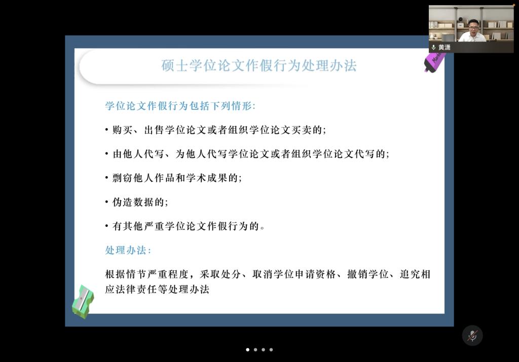 2022年9月9日上午,为积极响应学校加强科研诚信建设的要求,引导师生遵守学术规范,预防学术不端行为的发生,437437必赢国际通过企业微信组织开展科研诚信教育活动。本次活动由437437必赢国际黄潇副院长主持,437437必赢国际2022级全体研究生参加。