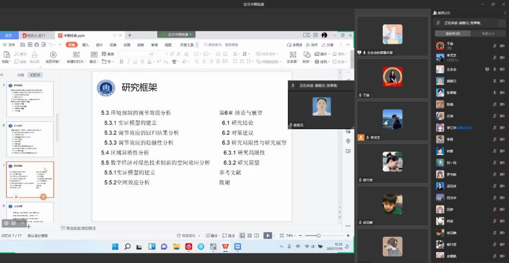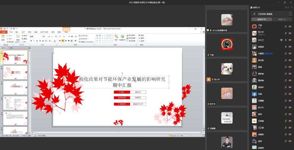 2022年11月10日至11月11日,437437必赢国际通过企业微信线上会议方式开展了2023届硕士研究生学位论文中期检查工作,唐路元教授、黄潇教授、朱沙教授等导师及437437必赢国际2023届硕士研究生参与了本次会议。
